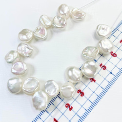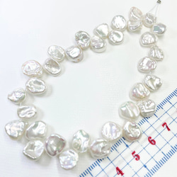 【現品限り】淡水パール コイン バロック 白 ホワイト1連 高品質 素材①