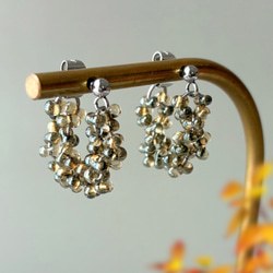 透明感のあるビーズをたっぷりと繋ぎ合わせ、光に透けるとブラウンにもグレーにも見える大人のニュアンスカラーに仕上げました。