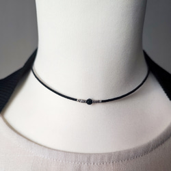 シルバー色のチューブ型メタルビーズが、クールで上品な印象にもなっています。