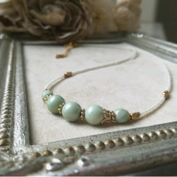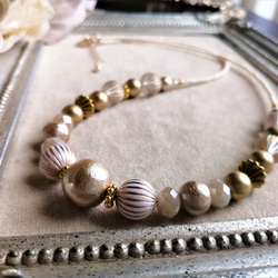 *ネック部分は、ベージュグレー色のシードビーズをしなやかなナイロンコートワイヤーに通しております。