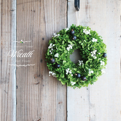 使用しておりますグリーンやお花は生花をプリザーブドフラワー・ドライフラワーへ加工されたものを仕入れ作品づくりを行っております。