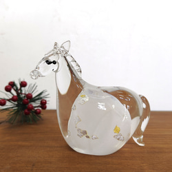 【受注生産】2026年干支午 黒台無しSサイズ 白毛 ガラス お正月 11月中旬から順次発送分