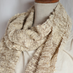 経糸に紬糸、緯糸にきびそ糸と紬糸を組み合わせて手織りならではの文様(網代柄)を織りあげました