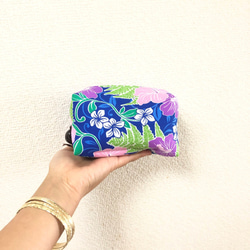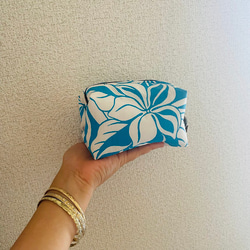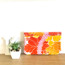 フラットポーチ(ポケット付き)ハワイアン生地でマスクケースやコスメなどマルチに使えるポーチ