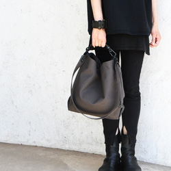 DUPEAURT/デュポー/巾着丸底2wayワンショルダーバッグ/本ヌメ革パーツ/パラフィン防水帆布/ダークグレー