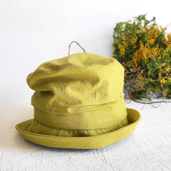 アシメトリーな ベレー帽 黄緑 ライムグリーン M 軽い カラフル 大人かわいい 洗える帽子 ポリエステル