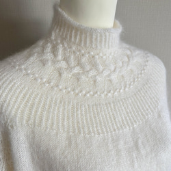 暖かみがありながらきれいな編地のアイテムで、可愛らしく仕上がっている一着です。