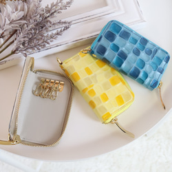 本体レザーと、バイカラーにてファスナーカラー/タッセルチャーム革引き手を採用しております。