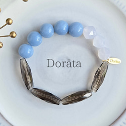 柔らかな紫色のレピドライト、スタイリッシュなブラックオニキス、清らかなホワイトカルセドニーが見事に調和した、シックで魅力的な天然石ブレスレットです。このブレスレットは、どんなコーディネートにも華を添え、特別なシーンや日常使いに最適です。それぞれの石が持つ特性が、あなたの心に安らぎと自信を与えてくれることでしょう。