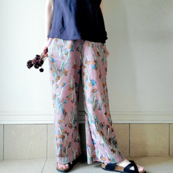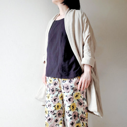 同じ生地を使って仕立てましたゆったりしたフォルムのパンツに合わせてセットアップも素敵です。