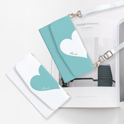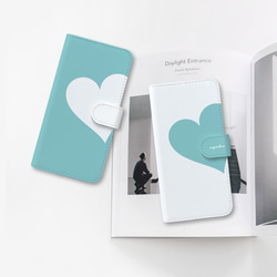 大きなハートが可愛いワンポイントのベルトなし手帳型ケースです。