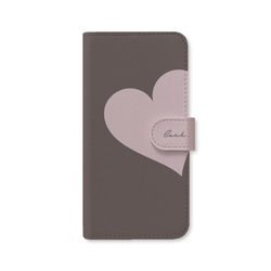 Big Heart♡くすみピンク iPhoneケース ベルトなし 手帳型ケース 名入れ ハート
