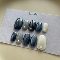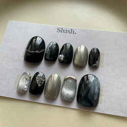 ⚪️暗めのマグネットネイルにゴールドフレンチで華やかさをプラスしました☁️普段使いはもちろん、パーティーなどにもおすすめです⚪️