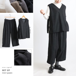 ⁂秋の新作 ニット コーデュロイ生地 上下セットアップ サイド横リボン付き ベスト 幅広 ストレート パンツ K32