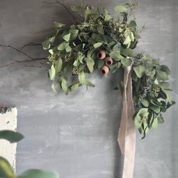 使用材料 ヒムロスギ・ブルーバード・ブルーアイス・ユーカリ・野バラの実・ローズヒップ等