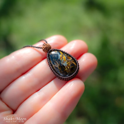 もっと自由に、もっとあなたらしく。感性を解き放つブルーオパールとチクナルドラクシャのお守りペンダント2 天然石マクラメ