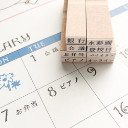 手書きの筆記体で、名刺サイズのカードやハガキサイズのカード、リボンに押したり、