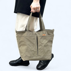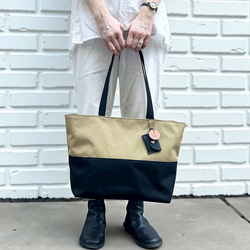 A4対応で通勤にも使いやすいシンプルトートバッグ halb:カーキ×ブラック(コーデュラナイロン 撥水加工ナイロン素材)