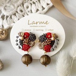 【木漏れ日】 刺繍耳飾り 秋に着けたいピアス・イヤリング