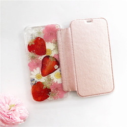 いちご iPhone17Pro/16e/17ProMax/GalaxyS25 押し花ケース フルーツスマホケース