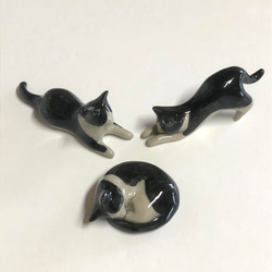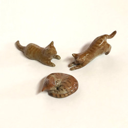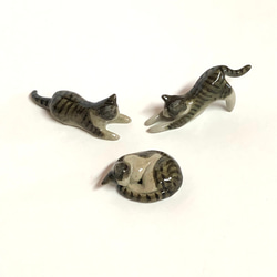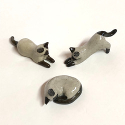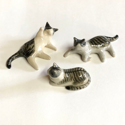 陶器でできた猫の箸置き三態セット(nite,nobi,maru/キジ白)