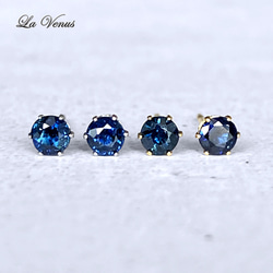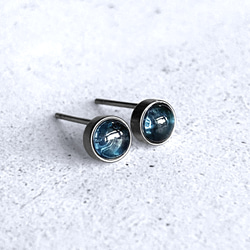 ✴︎つけっぱなしOK✴︎ 天然 ネオンブルーアパタイト ベゼルピアス 4mm 宝石質 サージカルステンレス 両耳用