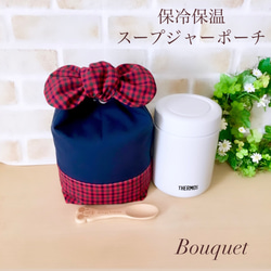 オールシーズン活用できる便利な保冷保温付きポーチです。市販のスープジャーに合わせたサイズになっておりますが、おにぎり・フルーツ・おやつ入れ等多目的にご使用いただけます。