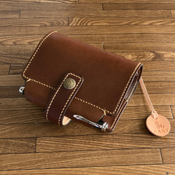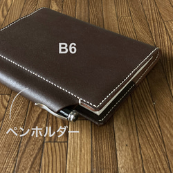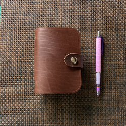 ・筒状ペンホルダーのB6 手帳 ノート付 ヌメ床革 ダークブラウン系