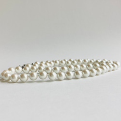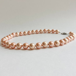 オールノットネックレスの特徴として、万が一糸が切れた場合でもばらばらにならず最小限で抑えられる点や、玉同士が密着していないので擦れあいにくく傷も付きにくい点・また玉同士が少し離れている為、首回りにフィットしやすくなっている点等がございます。この仕様は特に海外で人気があり、比較的高品質アクセサリー類によくみられる仕様です。※弊社の自社工場にて塗装したパールになります。品質の状態も維持されており、剥がれや大きな目立った傷などもございません。稀にピンホールや小さい凹み等が見られる場合がございますが、自社にて検品の上、品質に問題は無く許容範囲とさせて頂いております。