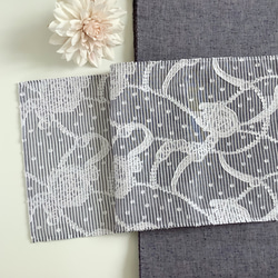少し離れて見ると線画の輪郭が混ざり合い、ぼかし染めのようにも見えてくる奥深い柄です。