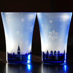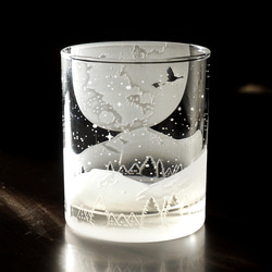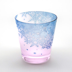 八角形の不思議なグラスに、霜と雪の結晶を彫刻した作品です。
