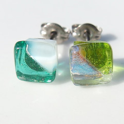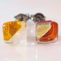 ◆色が変わる光るガラス『きらり【白光マジック】』チタンピアス 【樹脂、ノンホール選べます】
