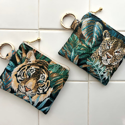 フランス生地のカラビナ付きポーチ SAFECO社ジャガード トラ柄 ヒョウ柄 アニマル コインケース ミニ財布 小物入れ