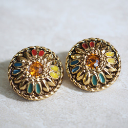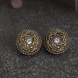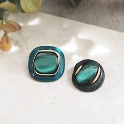N様★モザイクデザイン ブラック×クリア 2way レトロボタンピアス ゴールドフープ