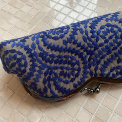 インド刺繍 エッグフラワー グレー 大きながま口ポーチ コスメポーチ