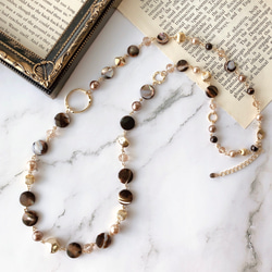 アジャスターをチェーンではなく天然石を繋ぎ作ることで、身に着けたときに後ろ姿まで華やかに飾ってくれます。
