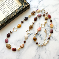アパタイトの間に丸カンを繋いでいるため、好きな長さで留めることができます。