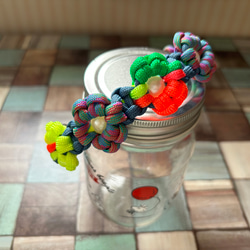 パステルレインボー色(4mm7芯)と赤色の(4mm9芯)パラコードで編み込んでおります。