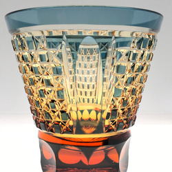 江戸切子の使用されています琥珀色瑠璃被せクリスタルロックグラスです。
