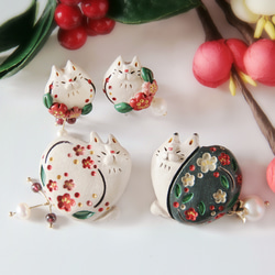 流星群をイメージしたたくさんの星をまとった猫と、お花と木の実をたくさん着飾った猫。