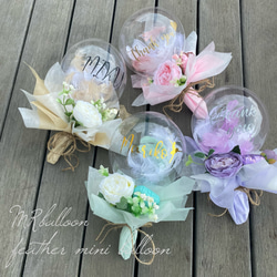 流行りのくすみ系に蝶、リボン、パール、フェザーと可愛いずくしのバルーンブーケになります。