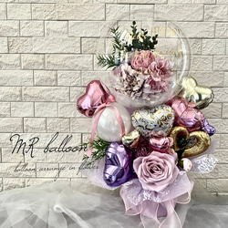 当店はお色指定での制作が基本の為、在庫状況により写真とお花やリボンなどが異なる場合がございます事をご了承下さい。ご希望ある場合はあらかじめお知らせ下さい。バルーンの形状により配置等も多少変わる場合もあります。