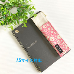 リバティラミネート布を使用した、手帳やノートに取り付けて使うと便利なスリムサイズペンケースです。