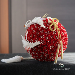 周りにはちりめん玉やつまみ細工の小花そして陶器ビーズなどで飾りました♪