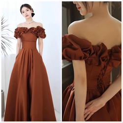 レース カラードレス|サイズ・色変更可 ボリュームスカート ロングドレス 演奏会・舞台・前撮り