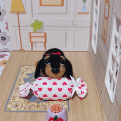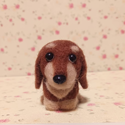 愛らしい瞳が魅力的な羊毛フェルト製のダックスフンド人形です。
