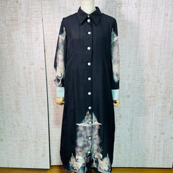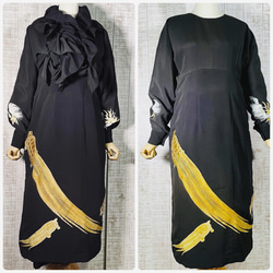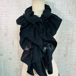 説明:黄土色正絹綸子&鹿の子絞りグラデーションふわふわ&ひらひらギャザーストールを作りました。反物からの作成です。通常黒留袖や絞りの着物からのリメイクの場合はどうしても1ヶ所継ぎ目が出来るのですが、継ぎ目ないタイプ希少なタイプになります。