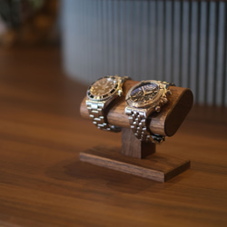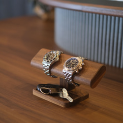 ウォルナットを分厚く贅沢に使った腕時計スタンドは、