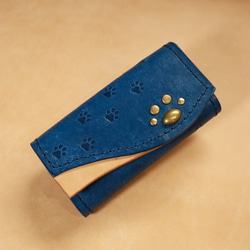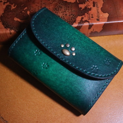 猫の肉球エンブレム 手染めアンティーク三つ折り財布