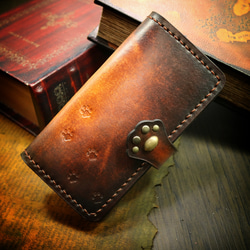 金の猫の肉球レザースマホケース